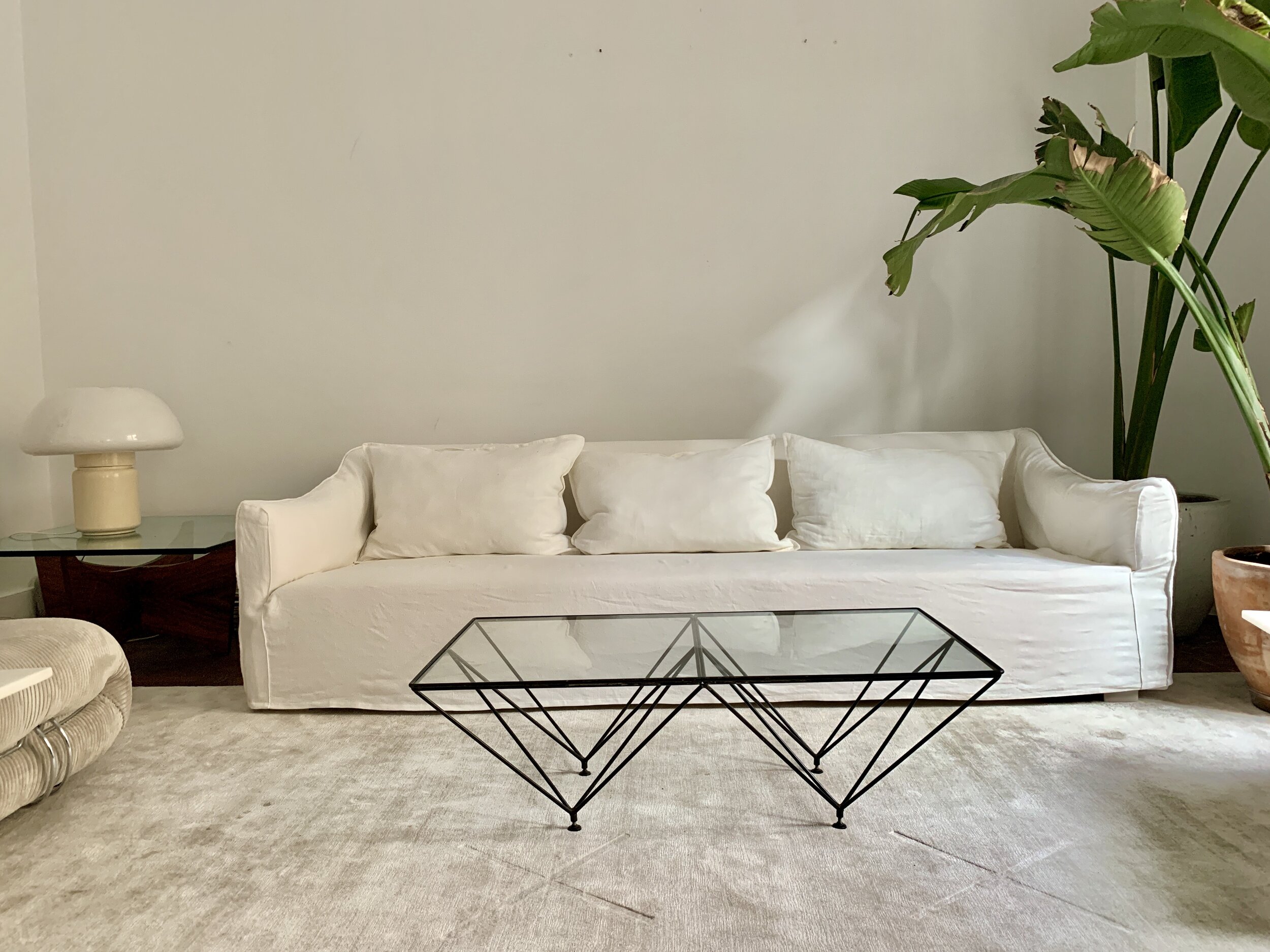 Mesa de centro italiana realizada en metal lacado y cristal. Años 80.