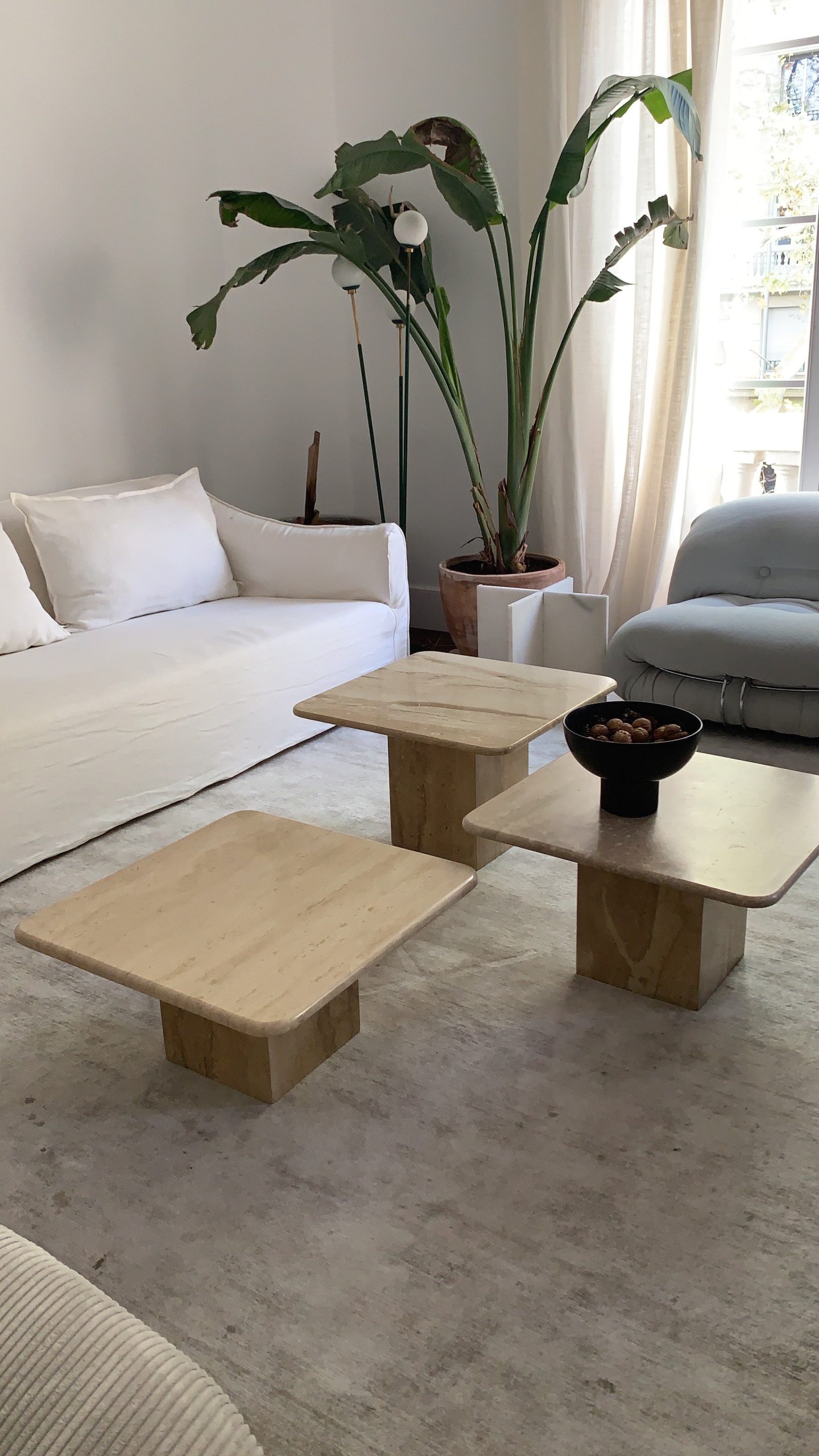 TRES MESAS DE MÁRMOL TRAVERTINO AÑOS 70